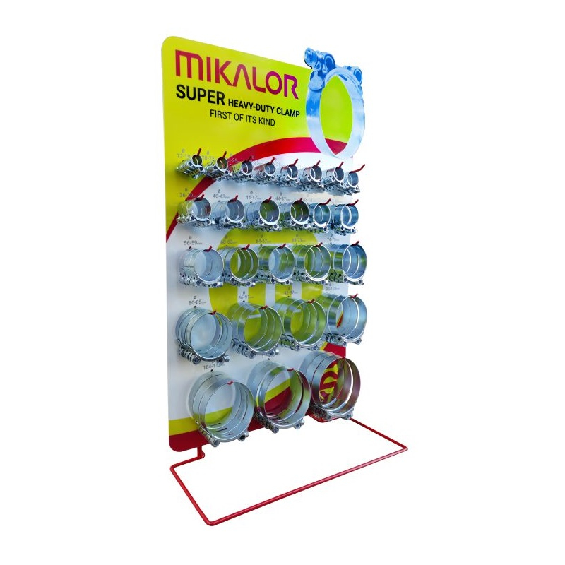You need to be logged in to see prices.Mikalor offer an eye catching Heavy Duty Clamp display that holds up to 78 clips available for W2 (430 Stainless Steel), W4 (304 Stainless Steel) and W1 (Steel plated) materials.